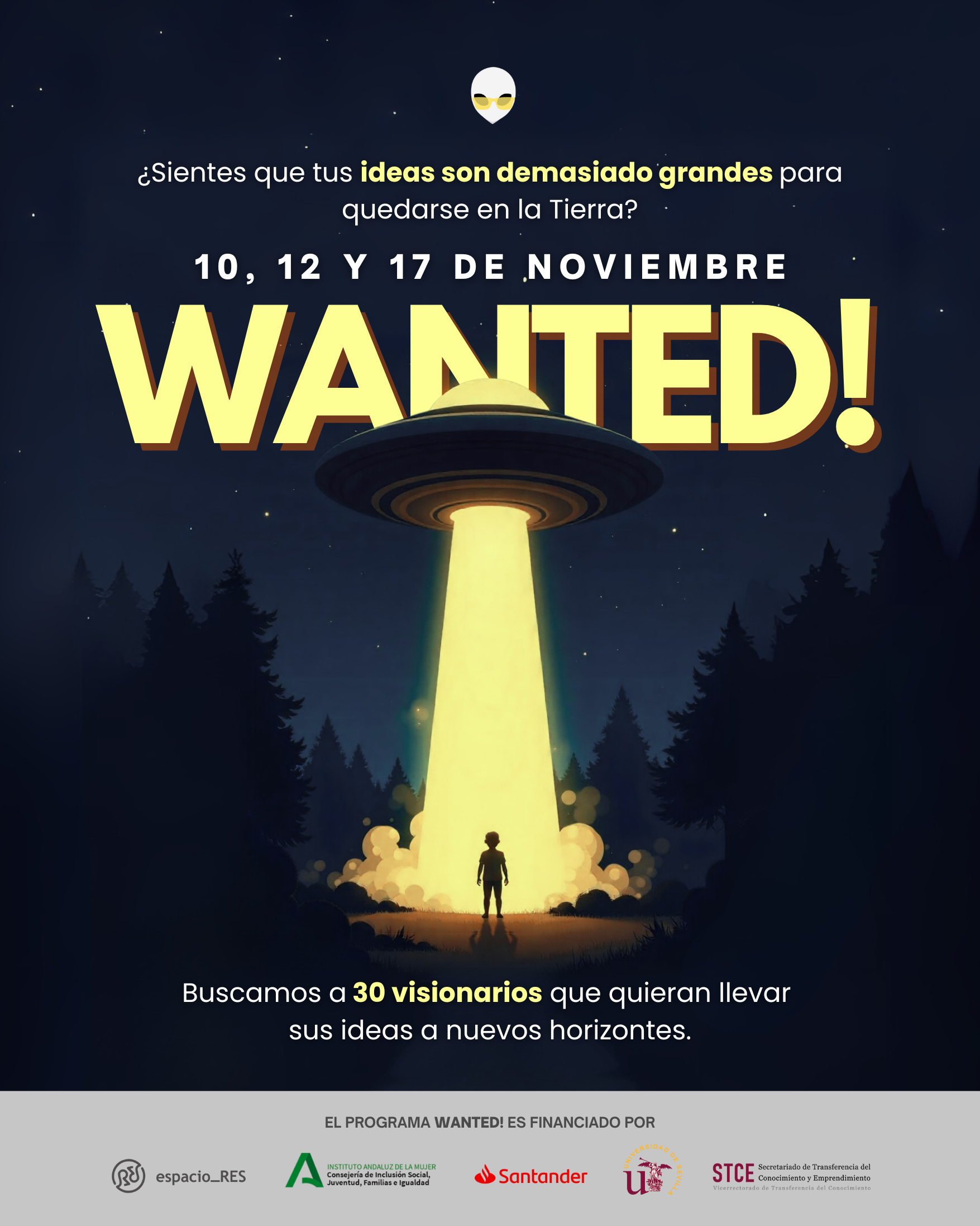 Programa WANTED! es financiado por la Universidad de Sevilla, el Secretariado de Transferencia del Conocimiento y Emprendimiento de la Universidad de Sevilla, el Instituto Andaluz de la Mujer, Banco Santander y Espacio RES.